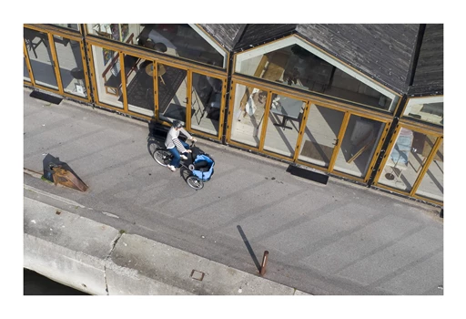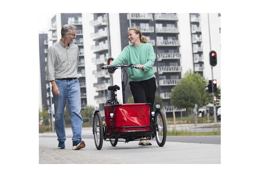 Cyklen er konstrueret med direkte styring på forhjulene, hvilket gør den både stabil og intuitiv at manøvrere. I modsætning til mange andre ladcykler følger kassen ikke med rundt, når du drejer styret – det giver en mere kontrolleret og tryg køreoplevelse.